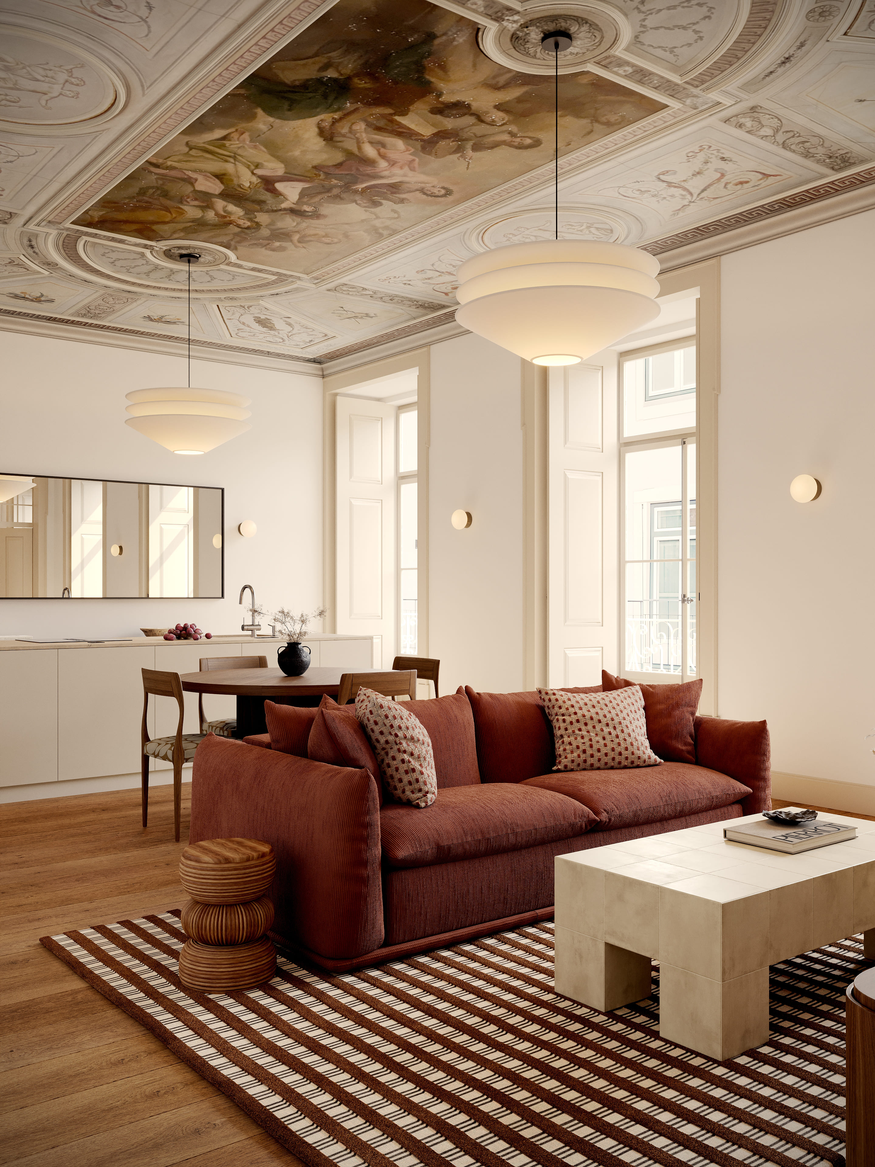 The building offers 20 serviced apartments across 4 floors, ranging from charming studios to spacious two-bedrooms. Each apartment has its own layout and character, with exceptionally high ceilings, large windows, and an abundance of natural light.Preserved with care, the structure showcases the best of Portuguese architecture: original wood parquet, traditional Portuguese azulejos, stone walls, and elegant historic detailing.Our in-house architecture and interior design team has carefully updated the space with natural textures, premium finishes, and soft, soulful tones — creating warm, refined interiors that feel rooted in Lisbon, yet timeless in spirit.